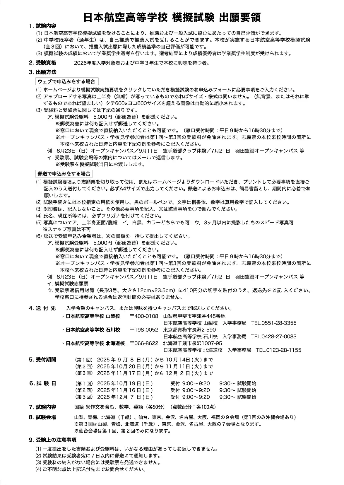 12/15 より日本航空高校石川の推薦入試出願受付を開始しました