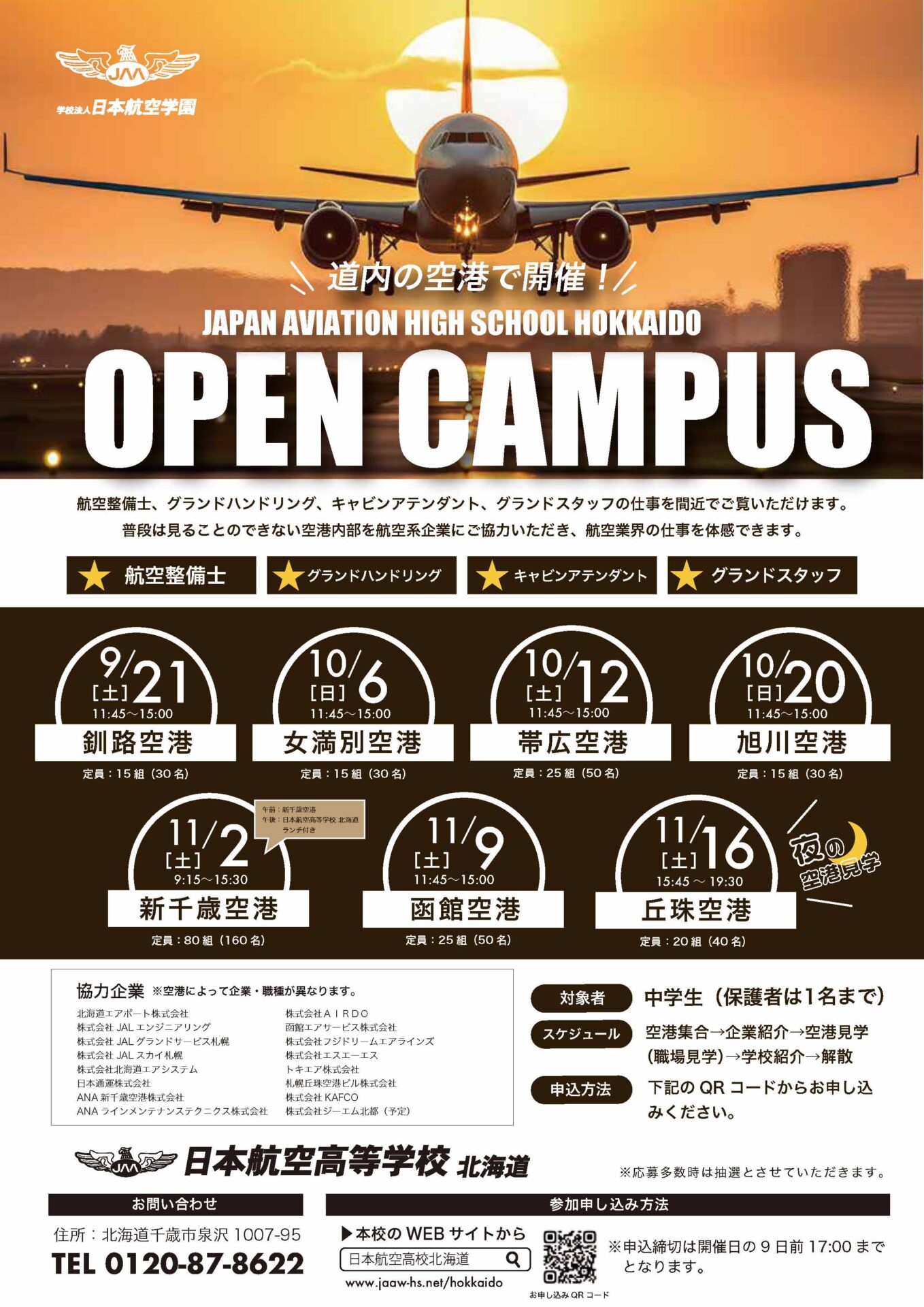 9月以降、北海道内の空港にてオープンキャンパスを企画いたしました!!