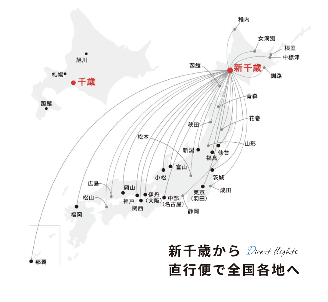 JAL、ANA大手エアラインをはじめ、リーズナブルな運賃のLCC(ローコストキャリア)などの多様な航空会社が乗り入れていますので、空の旅なら日本各地と北海道がとても身近です。