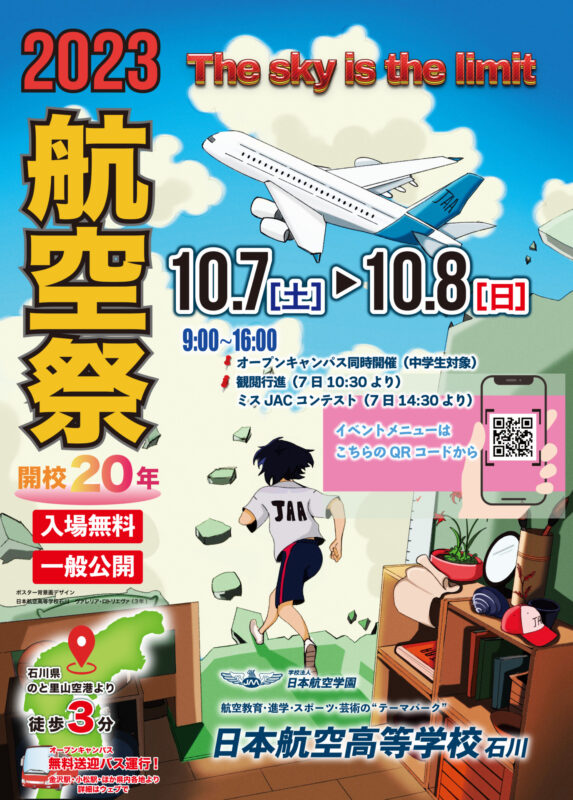 高校生による模擬店や屋台、多彩な航空サイエンスコーナー、航空機地上展示、自衛隊機、海上保安庁機展示、女子バスケットボール部クラブ招待試合、学園展示、制服バーチャル試着、おばけ屋敷、留学生との交流、観閲行進、ダンス部・吹奏楽団・書道部によるステージなど丸一日楽しめます。